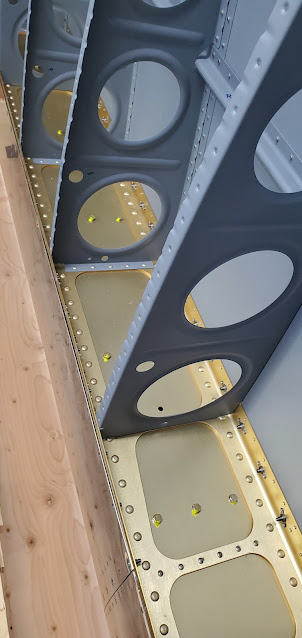 Before I started on the flaps today, I did a little back tracking. No pictures, but there were a few AN470 rivets that have been bugging me for a while. I've since figured out that position really matters when riveting. During my learning curve, I've destroyed some rivets, and I left them in place because I wasn't sure if I'd do a better job after drilling them out. Fast forward, and I've got a lot more experience now - enough that I can drill out rivets without doing much damage, and enough that I can rivet with far more skill. So today I started my garage session by drilling out about a half dozen rivets in the wings and redoing them. Most of these were due to one thing - the manufactured head was severely dinged because I had let the rivet gun walk all over the place (the mil spec says that anything over 1/4 the depth of the manufactured head needs to be replaced due to increased risk of future cracking). This was before I figured out that the air restriction device that goes on the gun is a terrible tool. I don't know why it's different, but changing the air pressure at the wall makes for a completely different riveting experience. I mean completely different. Instead of leaving the main line at 90 psi and restricting the air using the gauge at the gun, I dial back the main line to around 40 psi for #40 rivets and 30 psi for #30 rivets. For whatever reason, the rivet gun is much, much more controllable as compared to the 90 psi but using the valve at the gun to dial it back. It just hits very differently. So anyway, lessons behind me, I drilled out a number of rivets that I consider sub-par, and I redid them. All turned out 100% better. Once I have the flaps done and room on my table, I will bring the horizontal stabilizer back down to the shop and drill out the internal rib to spar rivets. The exact same thing happened with them (such deep dings that I worry about cracking), partially because this was before I had purchased offset sets for the rivet gun. I'll sleep better with those re-shot.